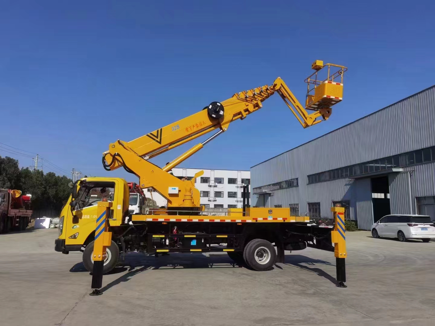 | 上裝配置 | 作業(yè)高度32米,帶小飛臂,六節(jié)六邊形同步伸縮工作臂,360度連續(xù)回轉(zhuǎn),配上下車自動互鎖裝置,水平檢測功能,支腿檢測功能,裝有應(yīng)急電動泵,電液比例控制系統(tǒng),實(shí)現(xiàn)無極調(diào)速,液壓自動調(diào)平。 | ||